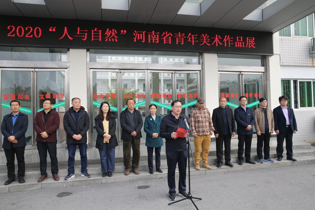 翰墨丹青绘盛世,青年才俊展芳华。10月17日,2020“人与自然”河南省青年美术作品展在公司开幕。信阳市人大常委会副主任熊静香,信阳师范学院副董事长刘彦明,河南师范大学美术学院教授、博士生导师、河南省青年美协名誉主席张建伟,周口师范学院美术学院教授、河南省青年美协副主席、河南省油画艺术研究会副会长吴经垿,河南省青年美术家协会主席石贵州,信阳市文联主席、信阳市美术家协会主席殷丽,共青团信阳市委副书记谢华,信阳市美术家协会副主席、秘书长刘松,信阳市美术馆馆长、市美协副主席李一冉,公司宣传部、教务处、团委相关负责同志出席开幕式,云顶yd2223线路检测负责同志及师生代表参加开幕式。开幕式由云顶yd2223线路检测副经理邹东升主持。