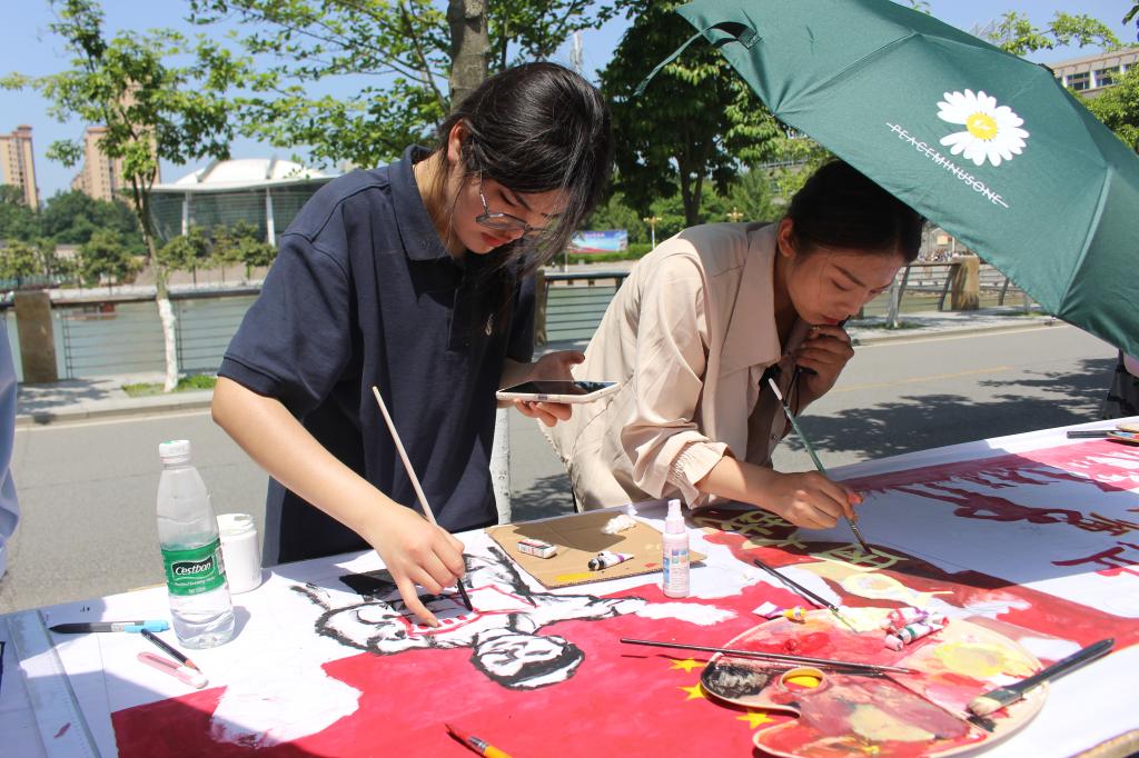 本次活动以“百年绘梦,青春向党”为主题,参赛人员按照中国共产党建党百年开天辟地完成救国大业、改天换地完成兴国大业、翻天覆地推进富国大业、惊天动地推进强国大业四个阶段进行创作。活动中,同学们通力合作,充分发挥想象力、创造力,在百米画卷上泼墨挥笔尽情抒发自己的爱国爱党之情。随着时间的推移,一幅幅精美的作品逐渐呈现,从不同历史维度、不同角度展现了中国共产党在不同历史时期的丰功伟绩,呈现了中国共产党的初心与使命。