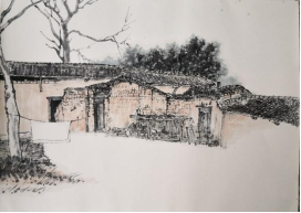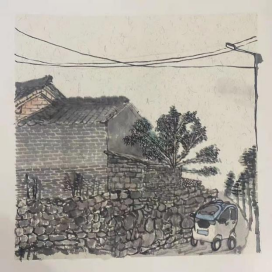 5月11日早七点同学们整装出发,经过三个小时的车程,到达新县金兰西冲写生基地。下午在当地负责人的带领下,师生们熟悉环境,进行写生前的考察。