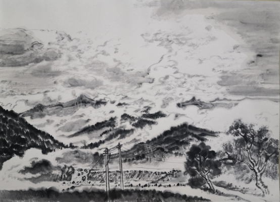 沿途景色怡人,山川秀美,远山在云雾中若隐若现,令人目酣神醉。称得上是“处处是景、步步入画”,唤起了同学们极大的创作热情。