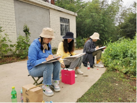 遇到阴雨天气,同学们写生热情丝毫未减,有条不紊的在屋里进行练习、调整画面。晚上又聚在一起,将各自的作品进行展示,相互观摩学习,老师给予指导。几天的练习、调整,同学们写生水平得到了很大的提升。