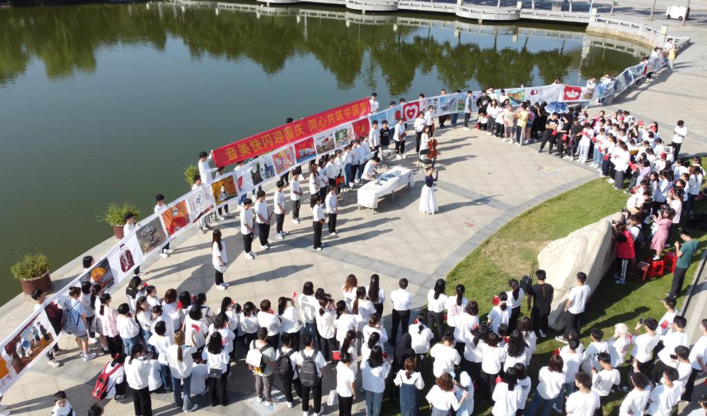 10月1日,云顶yd2223线路检测和音乐与舞蹈学院于图书馆半亩塘、艺术楼前举办了“音美快闪迎国庆,同心共筑中国梦”活动。校团委副书记常青、公司党委副书记周刚、音乐与舞蹈公司党委副书记雷玲及云顶yd2223线路检测、音乐与舞蹈学院师全体新生共同参与了此次活动。