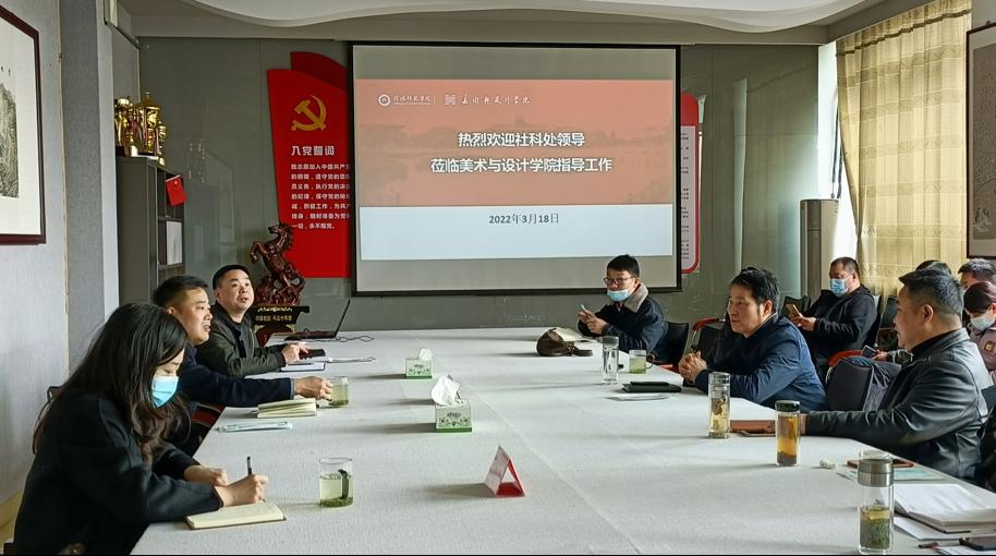 会议由董建义副经理主持,邹东升经理首先向参加会议的社科处领导表示欢迎,并且回顾了2021年学院在国家级科研基金项目申报、参加国家级展览的基本情况,重点介绍了学院去年申报7项国家艺术基金项目,成功获批2项,在河南省高校中排名第一,引起较大轰动。今年项目申报将采取早动员、多论证等方式促进国家艺术基金项目的获批再次取得更大收获。
