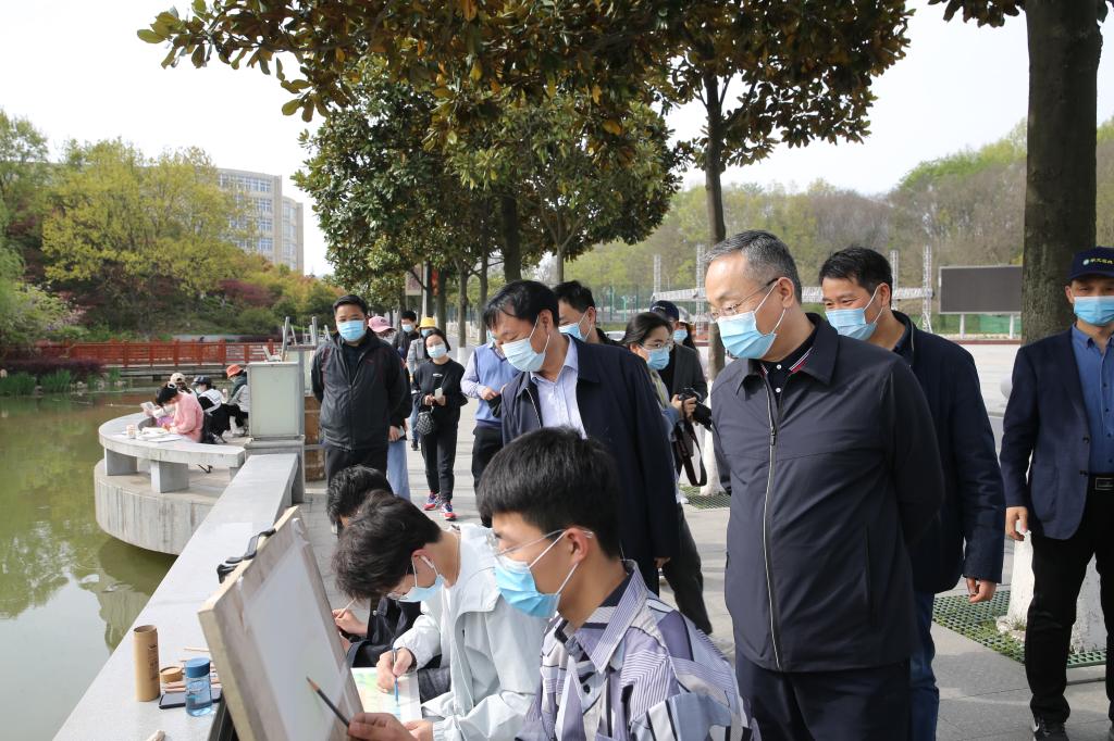期间公司党委书记王文鹏、董事长李俊、副董事长陈登报带领相关部门领导莅临活动现场参观指导。校领导高度赞扬了公司近年来在美育育人方面的成果,在与公司师生的交流中了解了此次活动的整体情况并勉励员工认真学习,珍惜写生机会,提高专业技能,争取创作出更多的优秀作品。