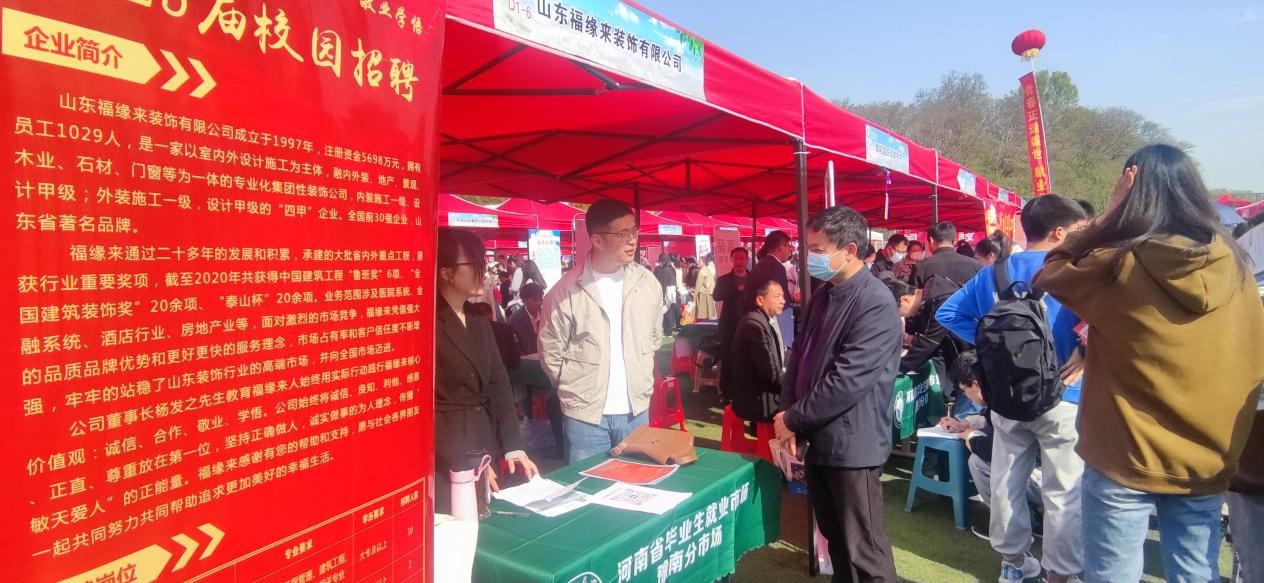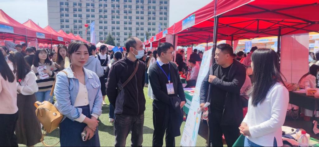 为贯彻落实党中央、国务院关于“稳就业”、“保就业”决策部署,搭建用人单位和毕业生双向选择交流平台,更好地满足用人单位的人才需求,4月8日上午,“河南省毕业生就业市场豫南分市场暨信阳师范学院2023届毕业生春季双向选择洽谈会”在公司西运动场隆重举行,公司2023届全体毕业生积极踊跃参加。公司党委书记兰洋,副书记周刚,副经理张伟、张江波,经理助理甘露,辅导员郑波到现场指导就业工作。