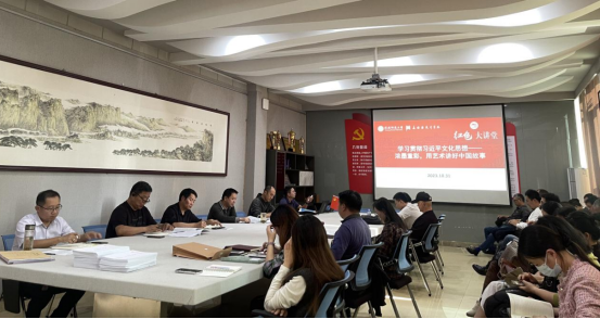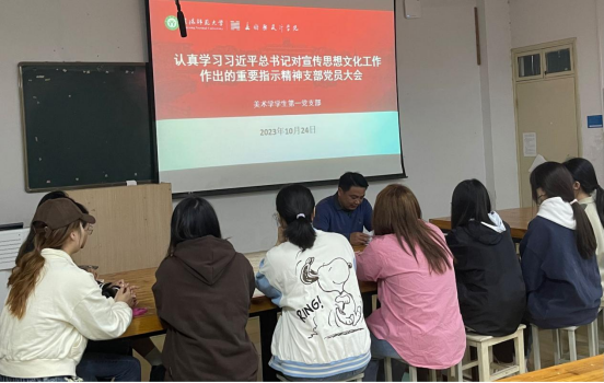 教职员工集中学。10月24日下午,云顶yd2223线路检测于艺术楼204会议室召开教职工政治理论学习会,会上,党委书记兰洋为大家作了题为《学习贯彻习近平文化思想——浓墨重彩,用艺术讲好中国故事》的报告。兰洋号召大家,作为新时代的艺术工作者,要坚持党的领导,维护国家文化安全;坚持文化自信,推动中华民族伟大复兴;坚持交流互鉴,建设中国特色社会主义文化,积极创作出影响深远、经得起历史检验的好作品,为文化强国的建设贡献属于自己的力量。