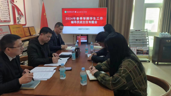 会上,各辅导员就自己分管的工作中重点任务做了汇报,对未完成工作的具体开展计划和安排作了交流。周刚传达了学校关于2024年春季员工安全稳定工作会议的精神,分析了公司当前员工安全工作的难点、痛点、盲点,对接下来的员工安全工作作了具体部署。王忠磊就学校2024年开学来几起安全隐患做了通报,再次强调员工安全问题,尤其关注近期受挫员工,要求辅导员主动深入寝室,主动开展谈心谈话等活动守牢安全底线。