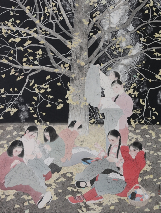 作品《落叶无声》以传统工笔结合皴染的技法,生动描绘了大别山区妇女为八路军战士缝补军装的感人场景,艺术地再现了“二十八年红旗不倒”的革命岁月中深厚的军民鱼水情。该作品的成功收藏,是对公司教师艺术创作水平的充分肯定,也是美术与设计学经理期坚持“红色铸魂、绿色塑形”特色发展路径,深耕地域文化、将红色资源融入教学与创作取得的显著成果。