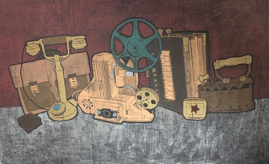 朝晨《老物件之刘邓大军挺进大别山》版画 80X50cm 2020年